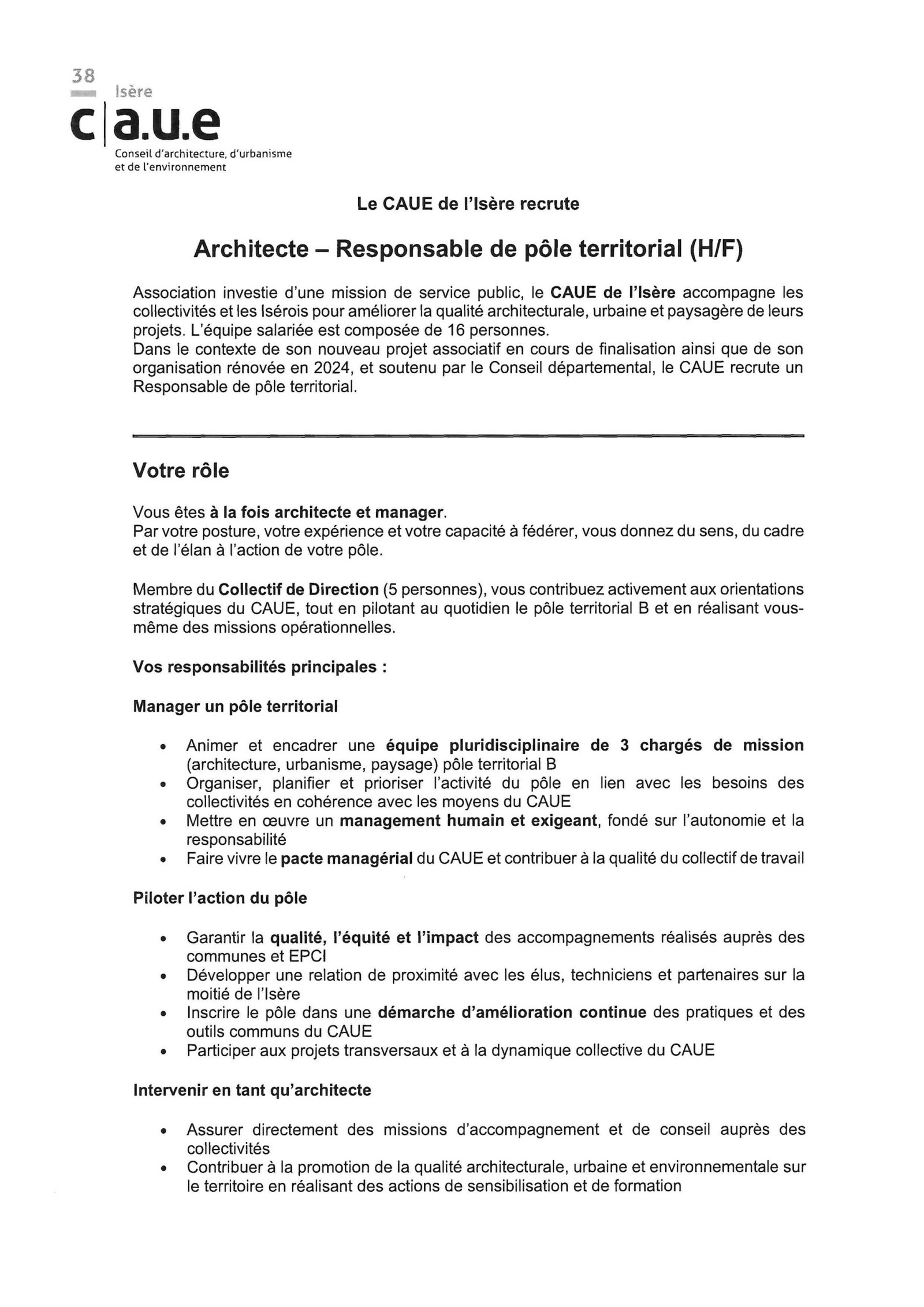 Le CAUE de l'Isère recrute: